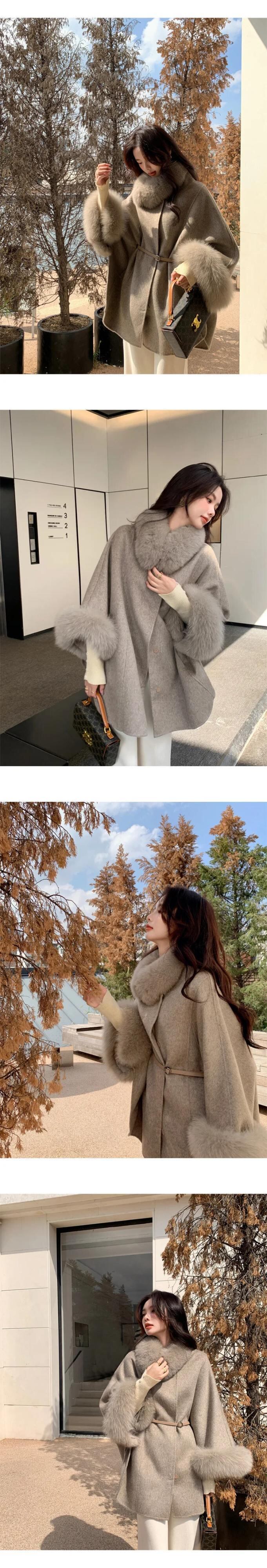 Ucxq e Wollen Jas Europese Stijl Vossenbont Kraag Riem Taille Mooie Warme Sjaal Jas Vrouwen 2024 Nieuwe Herfst Winter C1554 ウィンター 冬物