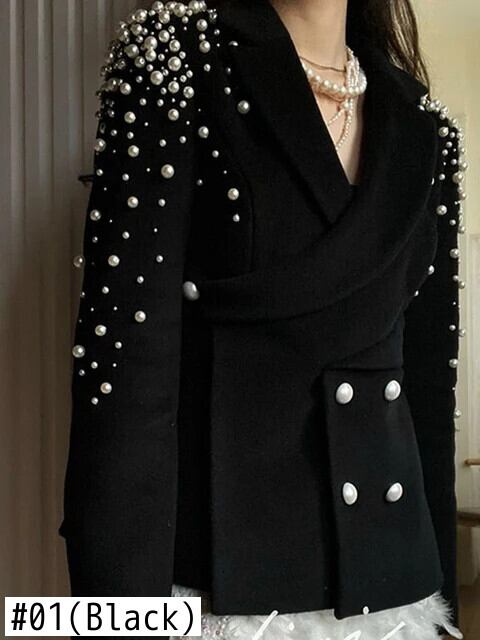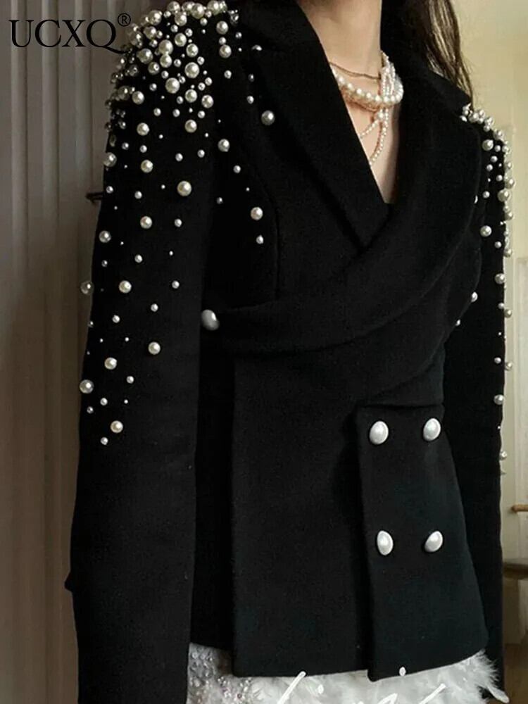 UCXQ モード Wollmantel Europäischen Stil Perle Zweireiher Unregelmäßige Alle Spiel and Jacke Frauen 2024、Frühling Herbst 3C1191 | city&trip