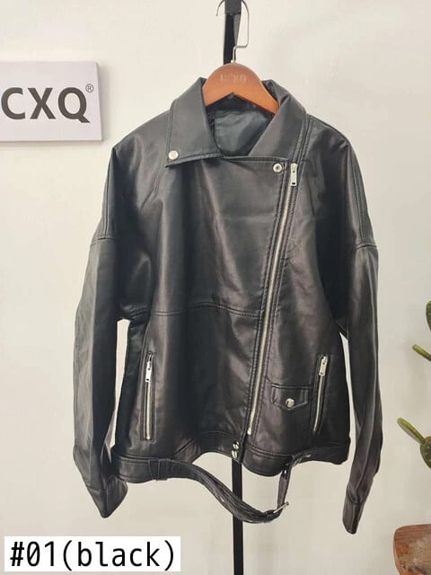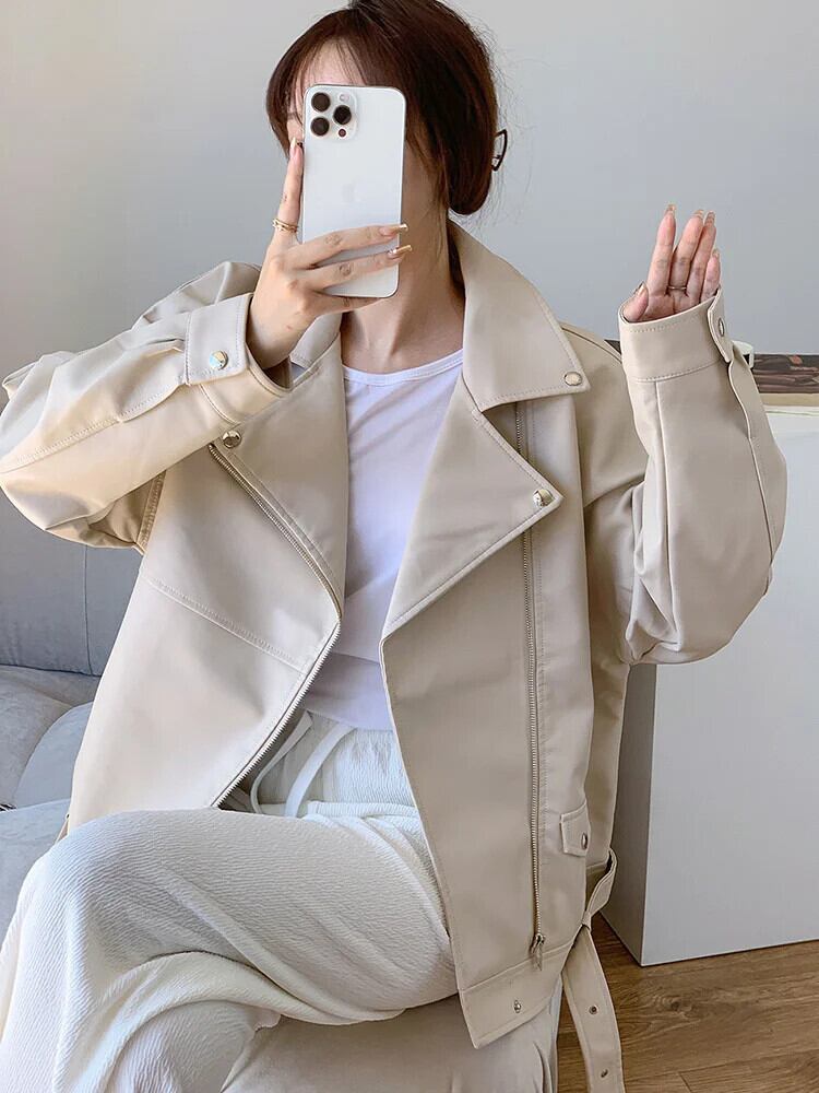 UCXQ オレンジ ジッパー Lose Pu Leder Jacke Straße Kleidung Revers Langarm Frauen Mantel Mode Flut Herbst Winter SM4037 ウィンター 冬物 | city&trip