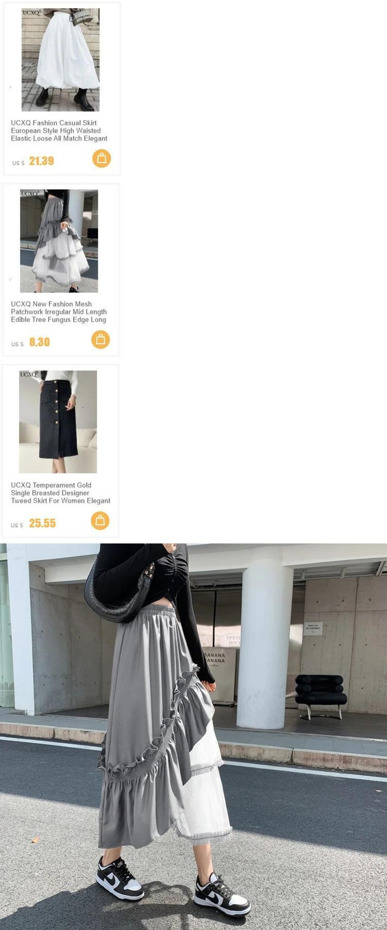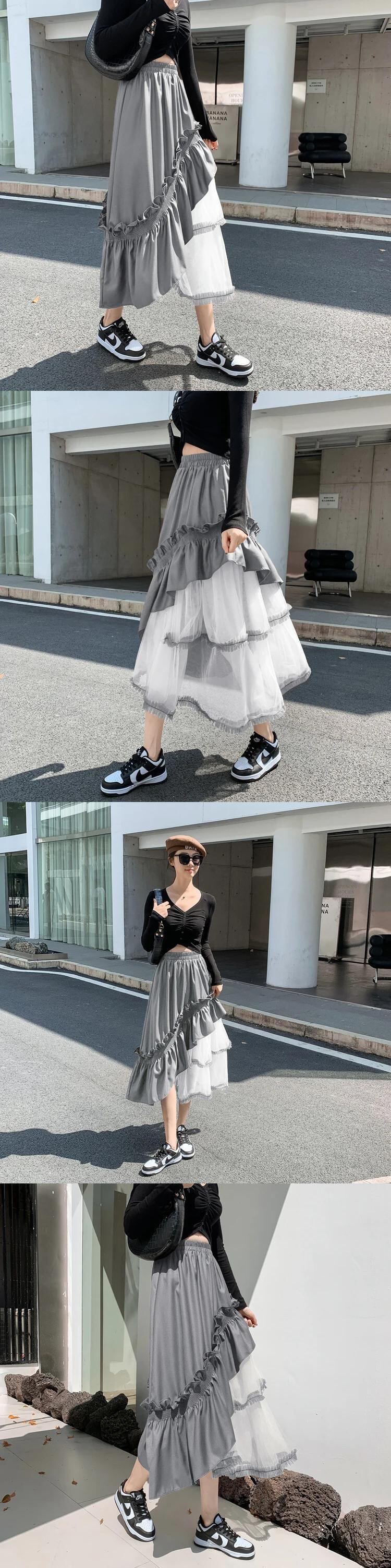Ucxq neue Mode メッシュ パッチワーク unregelmäßige mittellange essbare Baum Pilz Rangen Rock für Frauen Frühling Sommer neu 23 a7734 | city&trip