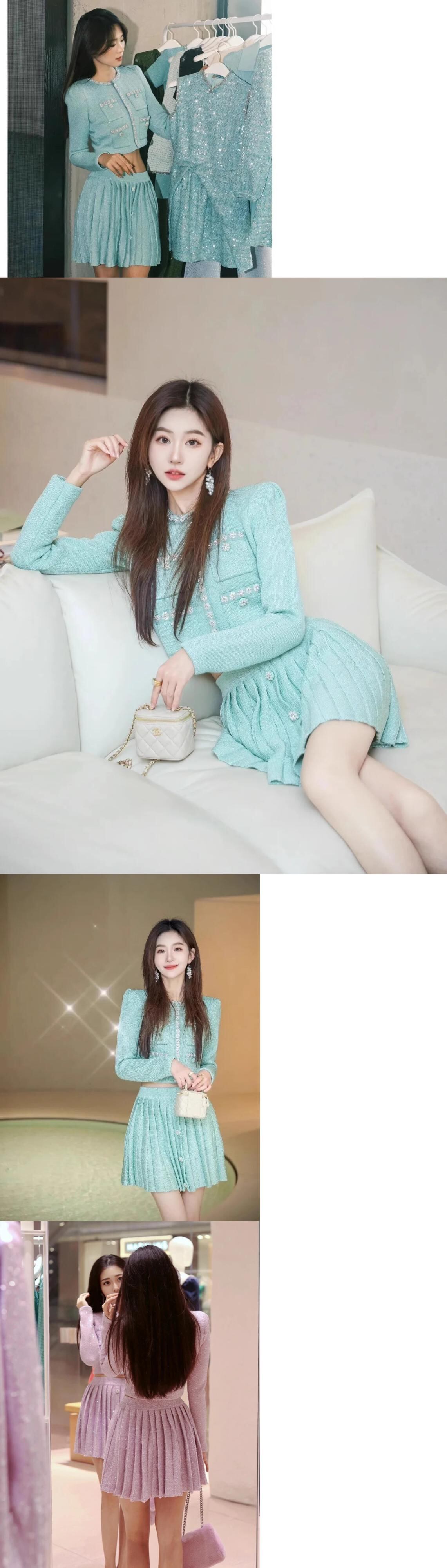 UCXQ モード フラウエン セット Europäischen Stil Nagel Perle O Neck Jacke Kurzen Falten Rock Zwei-stück セット 2024、neue Frühling Herbst C1080 Oネック | city&trip