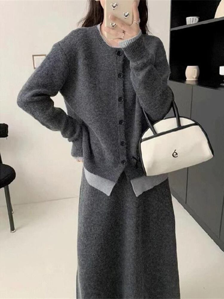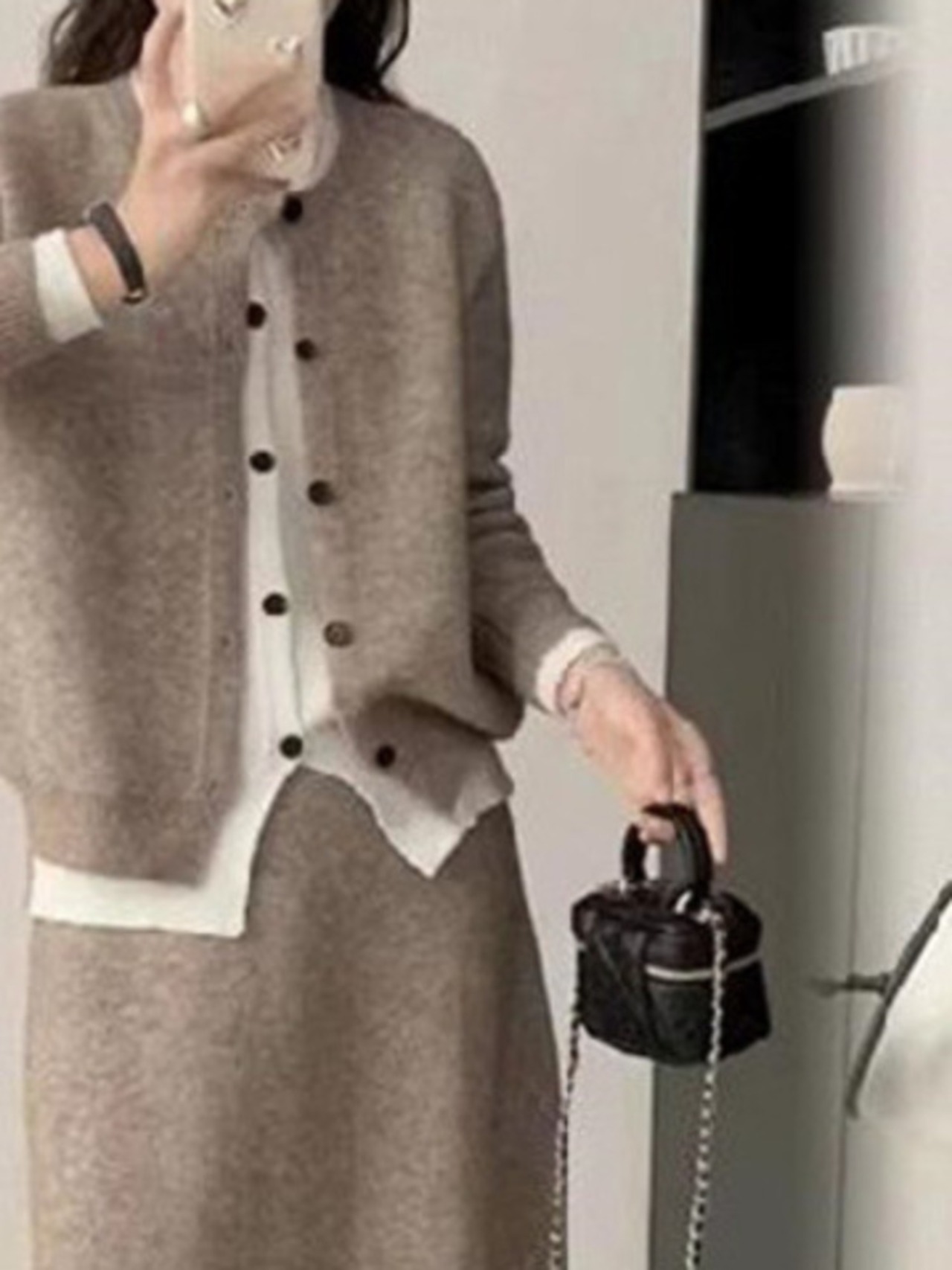 UCXQ モード セット 気質 Büro Dame Farbe Blockiert Stricken Jacket Rock および Zwei-stück Set Frauen 2024 Frühling herbst | city&trip