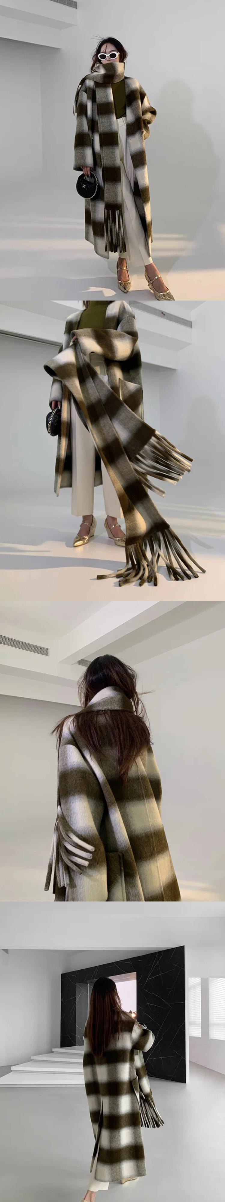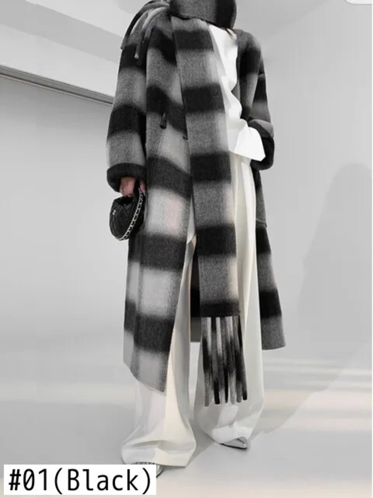 UCXQ モード ランゲ ジャケット Europäischen Stil Plaid Schal Kuh Horn Schnalle Lose Alle Spiel e Wol Mantel Frauen 2024 Herbst Winter ウィンター 冬物 | city&trip