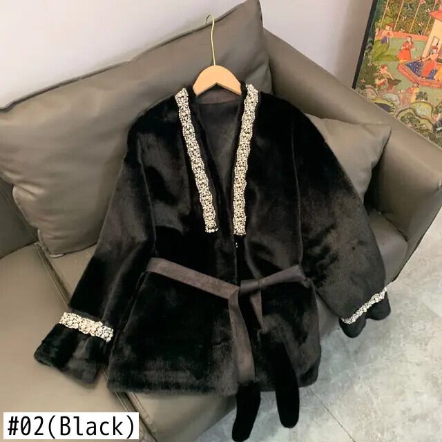 UCXQ e Damenjacke im europäischen Stil、Perlenspleißen、V-Ausschnitt、Schnürung、Taille、modischer Kunstpelzmantel、2024、Neu、Herbst und Winter、1684 ウィンター 冬物 | city&trip