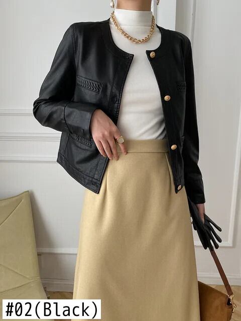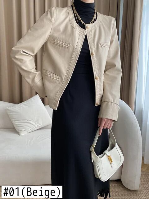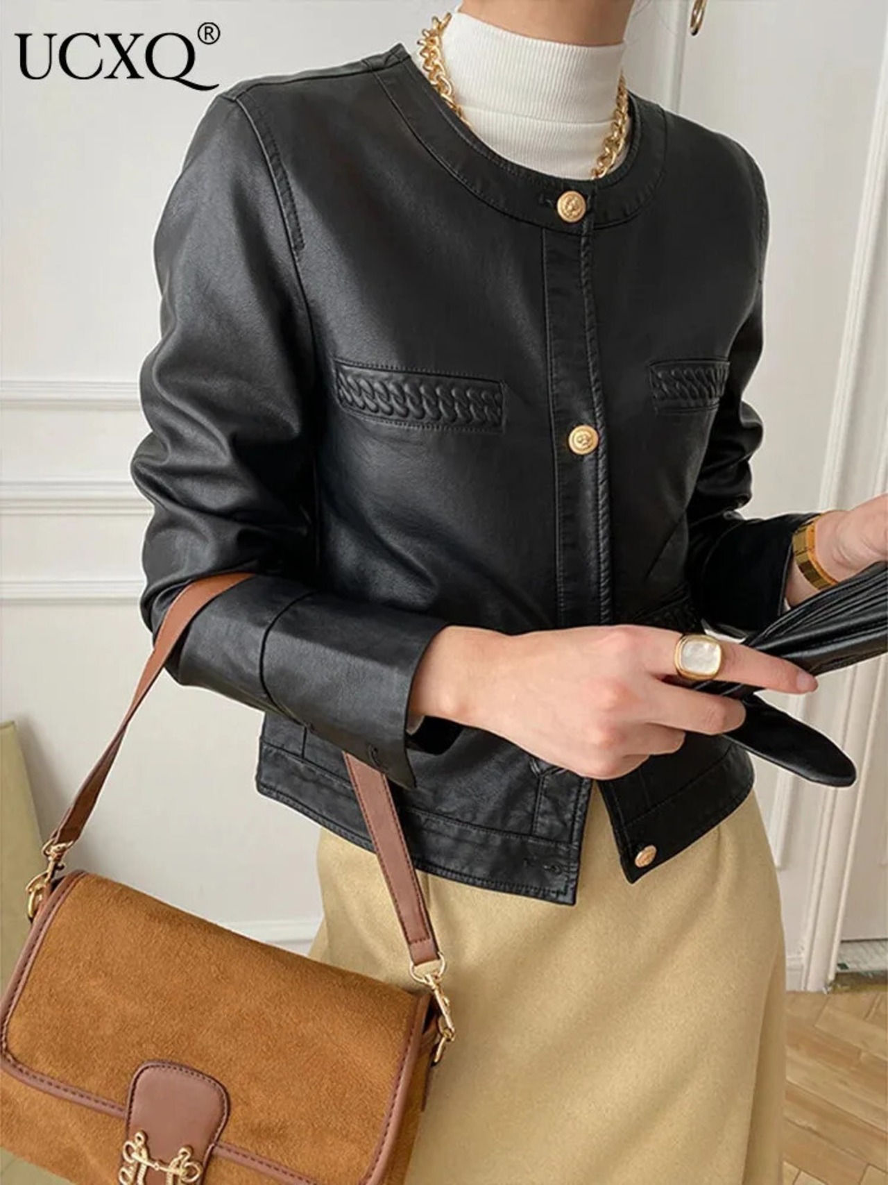 UCXQ モード PU ジャケット Europäischen Stil Gold Einreiher Alle Spiel Woven Leder Mantel Frauen 2024 Neue Frühling Herbst 1237 | city&trip